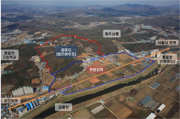 파주시는 조리읍 봉일천리 일원의 캠프하우즈 주변지역 도시개발구역에 대해 사업자 공모를 추진할 예정이다.