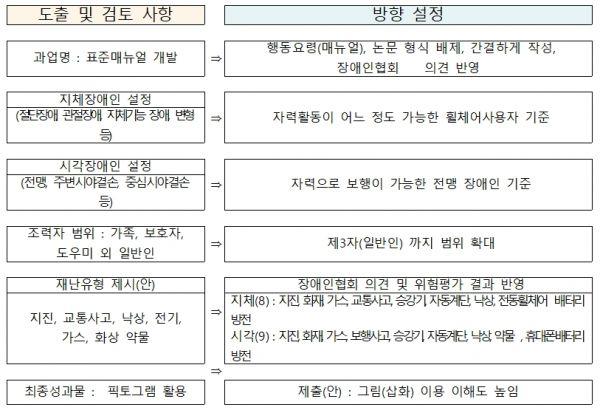 특히 장애인들에게 꼭 필요한 정보이나 그동안 지자체 소방재난본부 사고대응 매뉴얼에 포함되지 않았던 약물, 휴대폰 배터리 방전, 전동휠체어 배터리 방전 등 3가지 분야를 전국 최초로 매뉴얼에 포함한 점이 특징이다.
