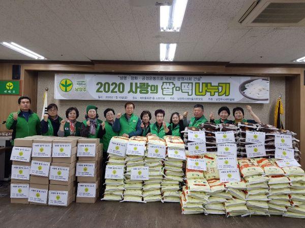 남양주시새마을사랑모임은 지난 10일 남양주시새마을회관에서 따스한 새해를 맞이하기 위한 ‘사랑의 쌀,떡나누기’ 행사를 통해 이웃사랑과 나눔의 정을 실천했다.