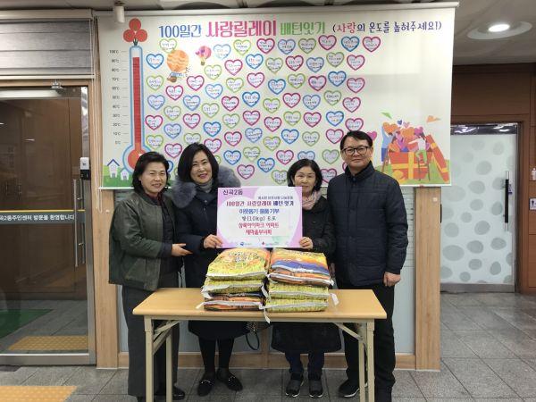 의정부시 신곡2동 상록아이파크 아파트 주민들은 지난 14일 신곡2동 주민센터에 설 명절을 맞아 주변에 도움이 필요한 이웃을 위한 쌀 6포를 기탁했다.