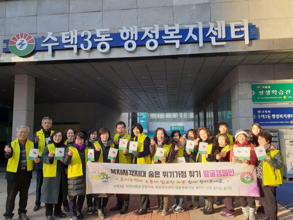 구리시 수택3동은 지난 15일 지역사회보장협의체 위원 및 명예 사회복지공무원 40여명과 함께 ‘동절기 복지 사각지대 숨은 위기 가정’을 찾기 위한 홍보캠페인을 실시했다.