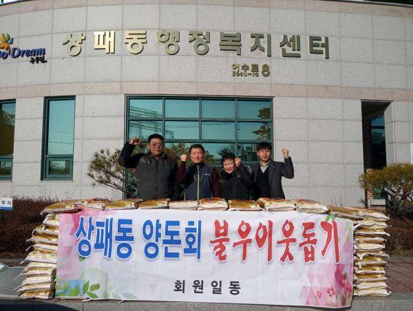 상패동 양돈회는 돼지고기의 품질 향상 등을 위해 동두천 관내 양돈농가가 모인 단체로 양돈 출하 시 발생하는 수익금의 일부를 꾸준히 모아 14년째 설과 추석에 지역 내 취약계층과 복지사각지대를 위한 백미 후원을 이어오고 있다.