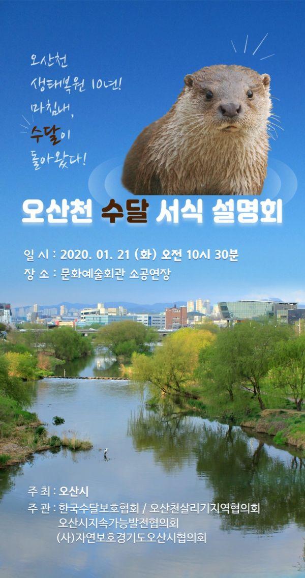 ‘오산천 수달서식 설명회’는 오산시 주최, 한국수달보호협회, 자연보호오산시협의회, 오산시지속가능발전협의회, 오산천살리기지역협의회가 주관한다.