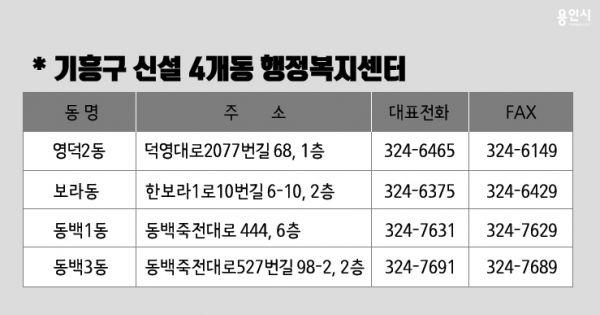 용인시, 영덕2, 보라, 동백1, 동백3동 등…당분간 임시청사 사용