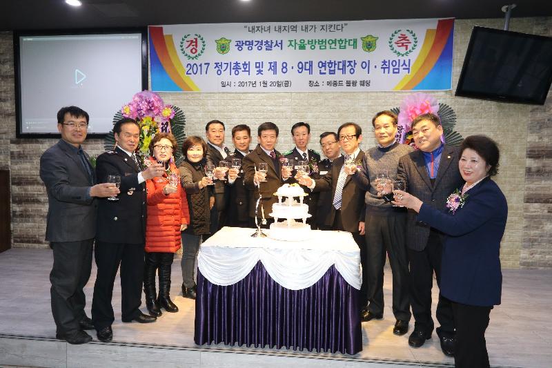 [미디어타임즈= 신정식 기자] 광명경찰서 자율방범연합대는 20일 오후 7시 철산동 메종드블랑 7층 연회장에서 제8대 이광수 연합대장 과 제9대 김성동 신임 연합대장 이·취임식 행사를 가졌다.