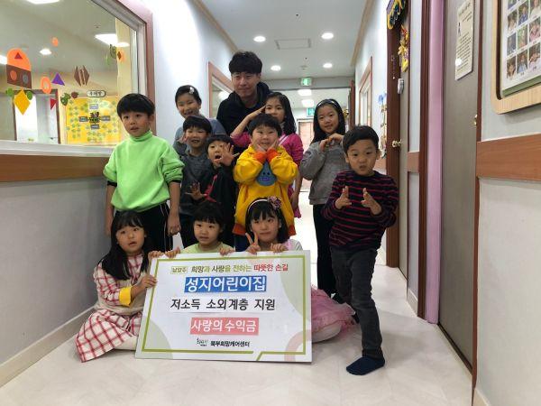 남양주시 별내면 소재 성지어린이집에서 지난 15일 아이들이 모은 사랑의 후원금 243,000원과 동화책, 옷 등의 후원품을 북부희망케어센터에 전달했다.