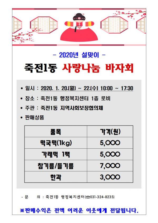 용인시 수지구 죽전1동은 지역사회보장협의체가 어려운 이웃을 돕기 위해 20~22일 행정복지센터 로비에서 ‘사랑나눔 바자회’를 연다고 밝혔다.