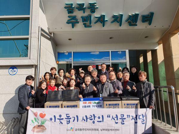 남양주시 금곡동 주민자치위원회는 설을 맞아 지난 16일 지역내 취약계층을 위한 후원물품 70개를 남부희망케어센터에 전달했다.