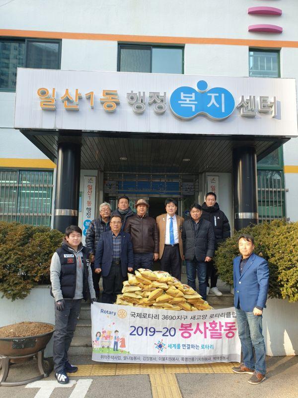 새고양로타리클럽은 지난 16일 일산1동 행정복지센터에 양곡 5kg, 총 40포를 기탁했다.