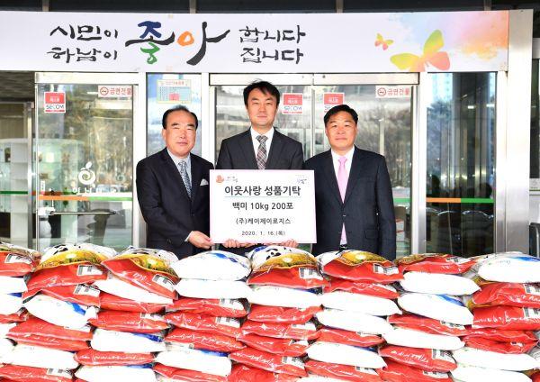 케이제이로지스가 설 명절을 앞두고 지난 16일 하남시에 500만원 상당의 10kg 백미 200포를 전달했다.