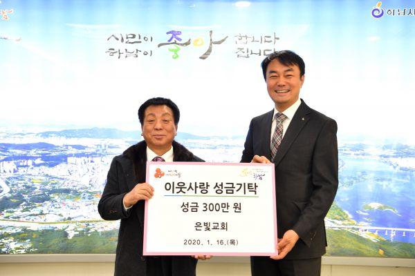 은빛교회가 지난 16일 하남시에 ‘하남 사랑愛나눔’ 이웃돕기 성금 300만원을 전달했다.
