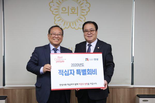 안성시의회는 17일 오전 소통회의실에서 대한적십자사 경기도지사에 2020년도 적십자 특별회비를 전달했다.