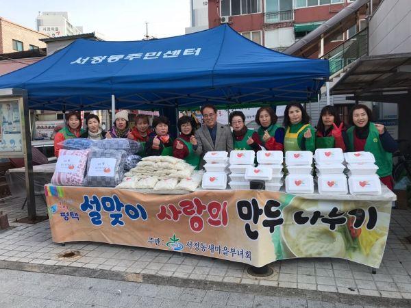 평택시 서정동 새마을 부녀회는 17일 서정동 행정복지센터에서 다가오는 설 명절을 맞아 관내 소외된 계층을 위한 ‘사랑의 만두 나눔’행사를 진행했다.