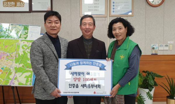 부녀회로부터 전달받은 양말 100세트는 안중읍지역사회보장협의체 위원들이 독거노인, 1인 중년가구 등 저소득 소외계층을 방문해 새해맞이 안부인사와 함께 전달할 예정이다.
