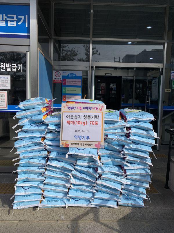 설날을 맞이해 취약계층 이웃들 모두가 따뜻한 설을 보내는데 보탬이 되고 싶다며 17일 익명을 요청한 기부자가 백미 70포를 김포본동행정복지센터로 기부해 감동을 주고있다.