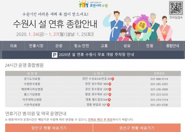 수원시가 연휴 대책 정보를 한눈에 볼 수 있는 ‘수원시 설 연휴 종합안내’ 웹페이지를 개설해 정보 편의를 높였기 때문이다.