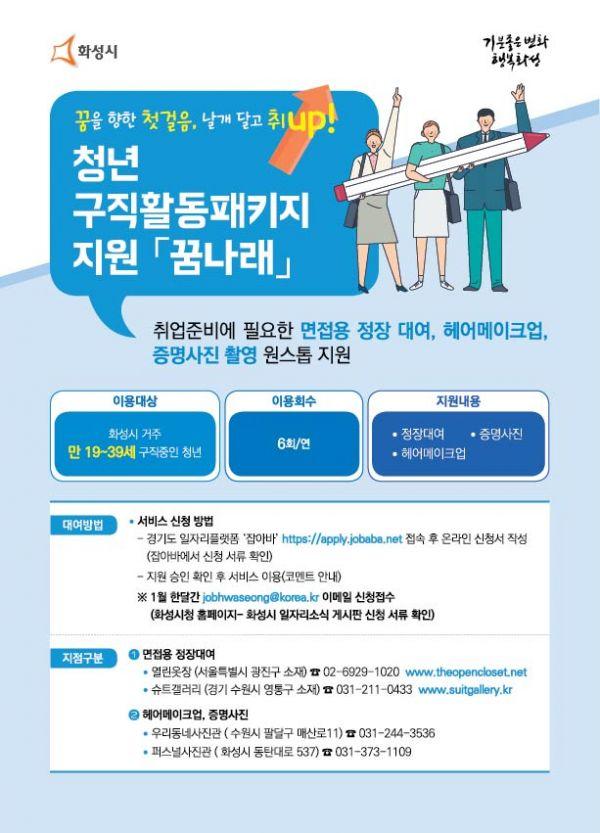 올해 취업을 준비 중이라면 화성시 청년 구직활동 패키지 ‘꿈나래’에 주목하자. 지난해 면접용 정장 무료 대여사업을 첫 도입한 화성시가 청년들의 높은 호응에 힘입어 올해는 정장부터 헤어 메이크업, 증명사진까지 풀 패키지를 지원한다.