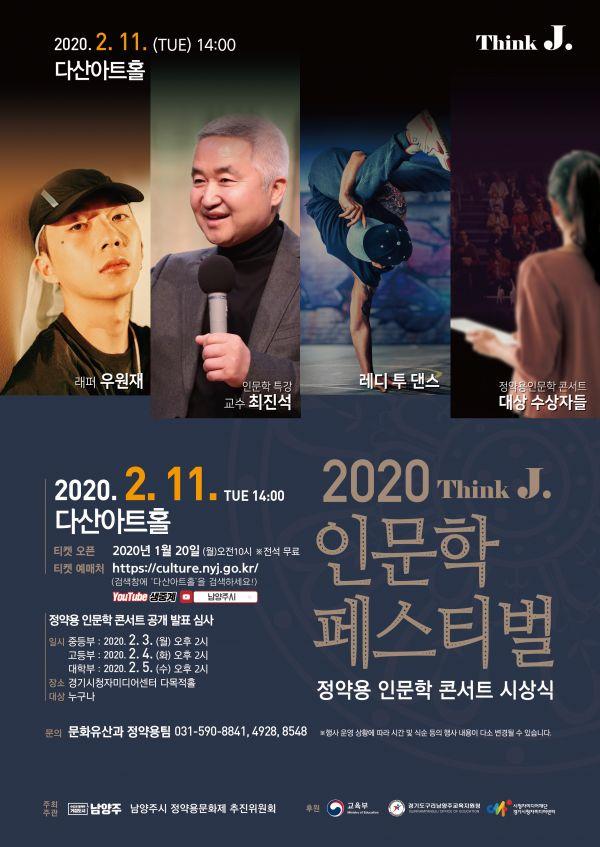 남양주시는 ‘정약용 인문학 콘서트’의 마지막 여정으로 오는 2월 11일 오후 2시부터 4시까지 다산아트홀에서 ‘Think J. 인문학페스티벌’을 개최한다.