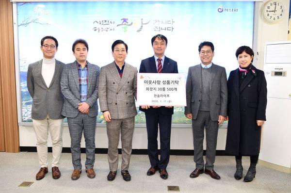 한솔라이프가 지난 17일 하남시에 어려운 이웃에게 전달해 달라며 600만원 상당의 롤 화장지 500세트를 기탁했다.