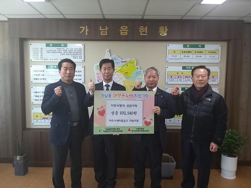 지난 17일 새마을금고 가남지점은 가남읍의 어려운 이웃을 위해 ‘사랑의 좀도리 운동’으로 모금한 성금 932,540원을 가남읍 행정복지센터에 기탁했다.