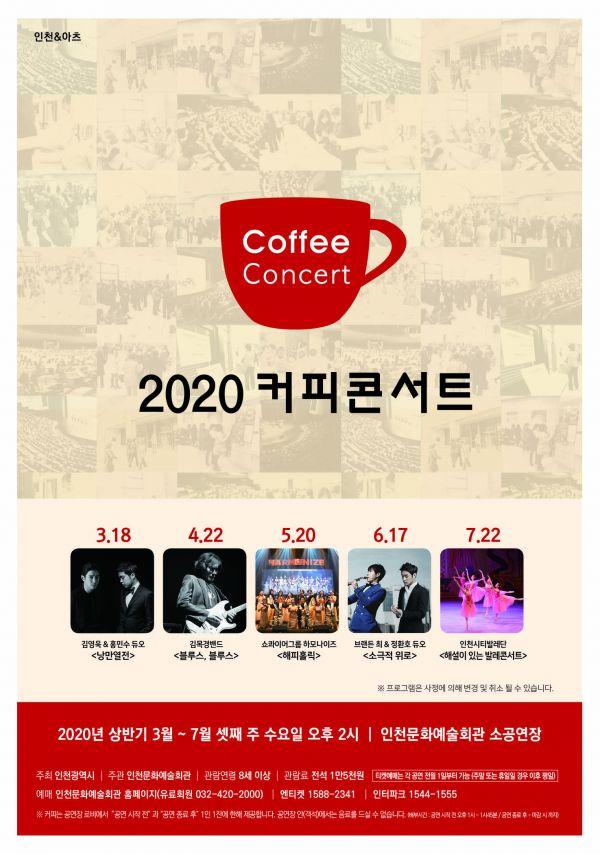 인천문화예술회관의 대표 브랜드 ‘커피콘서트’가 오는 3월부터 7월까지 총5회 차의 라인업을 공개한다.