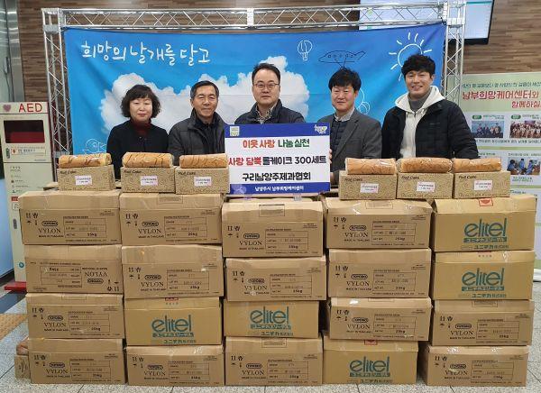 남양주시 남부희망케어센터에서는 20일 대한제과협회 경기도지회 구리·남양주시지부가 지역 내 어려운 이웃들을 위한 사랑 담뿍 롤케이크 300세트를 전달했다고 밝혔다.