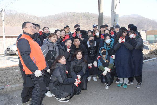 이날은 연예인 봉사단뿐만 아니라 ㈜진선, 식품기업 ㈜비원비오에프, 자원봉사단체 폴라리스단체, 크로스핏 등이 함께‘사랑의 짜장차’에서 저소득 어르신들을 대상으로 직접 재료를 손질한 짜장면을 대접하고 오후에는 연탄은행 및 동두천교회 자원봉사자들과 함께 연탄 배달을 했다.