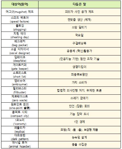 국립국어원 새말모임 대체어 마련