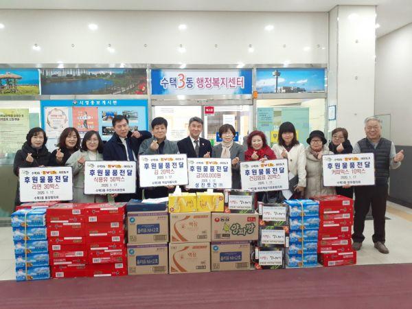 이날 행사에는 설 명절을 맞아 관내의 어려운 이웃들이 따뜻한 설을 보낼 수 있도록 지원하기 위해 마련된 것으로 수택3동 5개 기간단체 및 지역 내 기업체의 후원으로 이루어졌다.