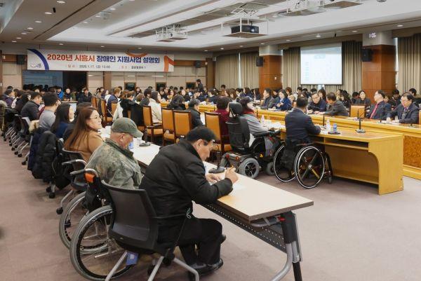 시흥시에서는 지난 17일 오후 1시 시흥시청 글로벌센터에서 장애인 및 가족, 장애인복지시설 관계자 150여명이 참석한 가운데 ‘2020년도 시흥시 장애인 지원 방향 및 주요사업 안내’ 사업설명회를 개최했다.