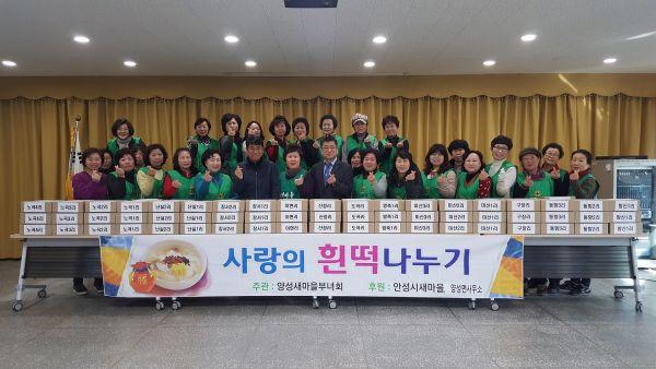 안성시 양성면 새마을 부녀회는 지난 20일 설을 맞아 독거노인, 저소득층, 다문화 가정 등 소외계층을 위해 떡국 떡 140개로 나눔 행사를 가졌다.