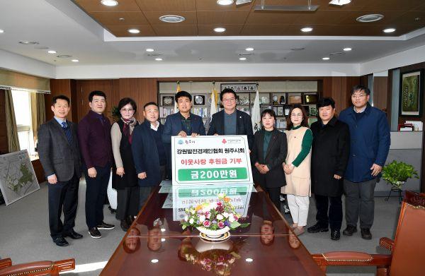 강원발전경제인협회 원주시회는 지난 20일 원주시장 집무실에서 설 명절 이웃사랑 후원금 200만원을 전달했다.