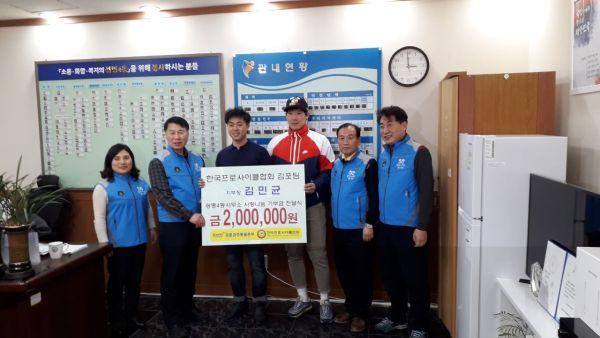 한국프로사이클협회 김포팀 김민균 지부장은 “많은 이웃들에게 사랑을 나눠 모두가 더 큰 기쁨을 느낄 수 있는 사회가 되었으면 좋겠다”고 후원소감을 밝혔다.