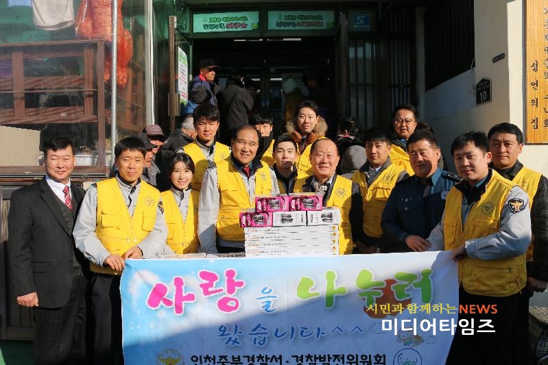 | 인천중부경찰서 설맞이 성언의집에 따뜻한 온기 전달하는 모습. <사진=미디타임즈> |