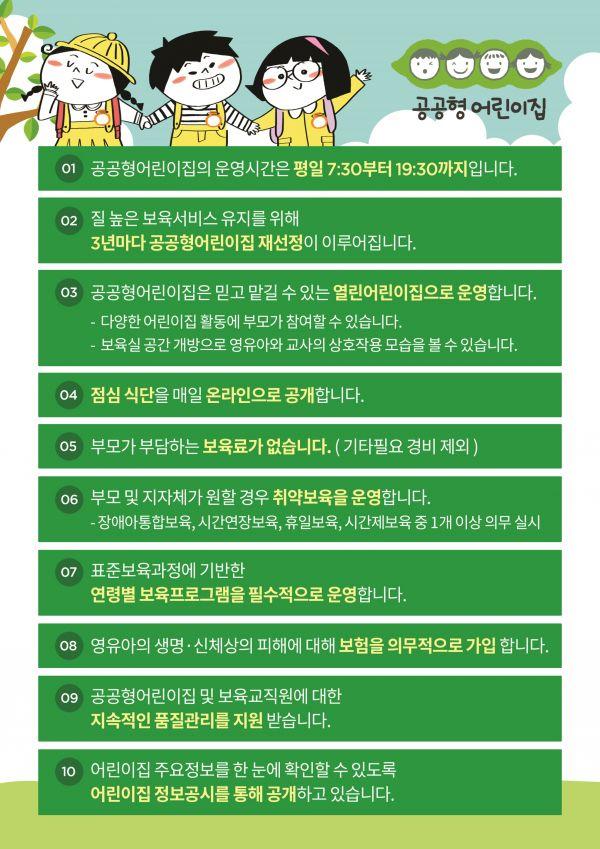 공공형어린이집은 우수한 민간, 가정어린이집을 선정, 국가와 지자체가 운영비를 지원해 양질의 보육을 제공하고 공공 보육 인프라로서 기능할 수 있도록 하는 보육시설이다.