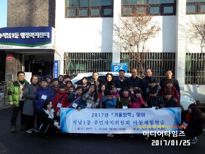 | 서구 석남1동 겨울방학 아동추억만들기 체험 행사 후 기념 촬영을 하고 있다. <사진=미디타임즈> |