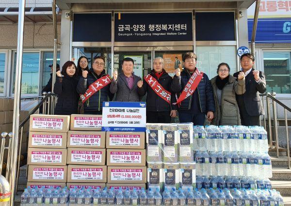 남양주시 금곡양정행정복지센터는 21일 금곡동 천리마마트에서 설 명절을 맞이해 지역 내 취약계층을 위한 500만원 상당의 후원 물품을 남부희망케어센터에 전달했다고 밝혔다.
