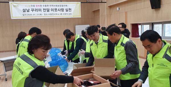 남양주시 수동면사무소는 21일 수동면 지역사회보장협의체과 함께 장애인, 독거노인, 기타 저소득층 20가구에 설 명절 선물을 전달했다.