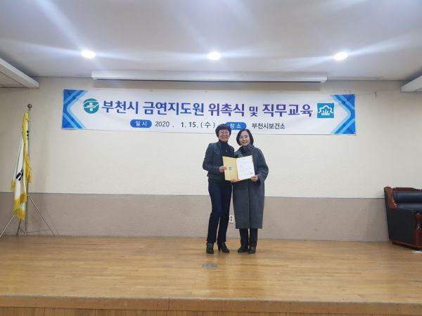 부천시보건소는 지난 15일 금연구역관리를 위해 공개모집으로 선발한 금연지도원 13명을 대상으로 위촉식을 개최하고 위촉장과 지도원증을 전달했다.