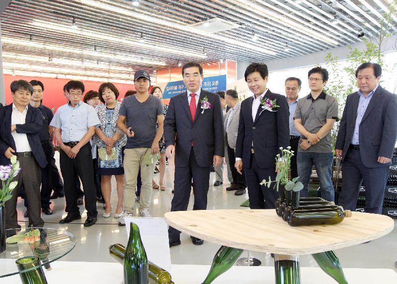 | 8일 나상성 의장과 광명시장은 광명업사이클아트센터에서 열린 '업사이클 가구 기획 展'에 참석해 작품을 감상하고 있다. |