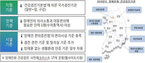장애친화 건강검진기관은 전국을 41개 중의료권으로 분류하고 의료권당 2~3개소를 지정해, 2022년까지 약 100개 기관을 운영할 계획이라고 전했다.