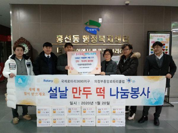 흥선동 행정복지센터는 지난 20일 의정부중앙로타리클럽과 함께 흥선동 저소득 어르신들에게 설맞이 떡과 만두를 전달했다.