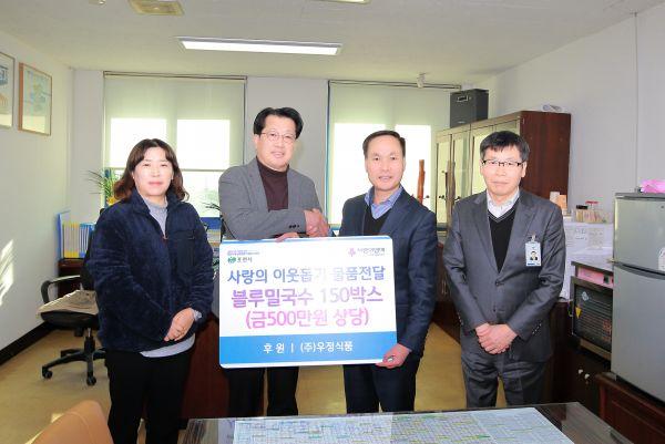 포천시 창수면 소재 ㈜우정식품은 포천시의 어려운 이웃들에게 설 명절을 맞이해 따뜻한 나눔을 전하고자 포천시에 블루밀국수 150박스를 전달했다.