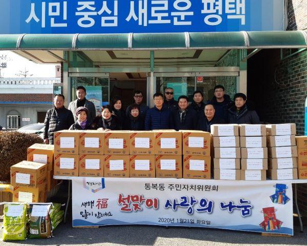 평택시 통복동 주민자치위원회는 지난 21일 설명절을 맞이해 관내 어려운 이웃 50가구에 200만원 상당의 쌀과 라면, 만두 등의 후원품을 전달했다.