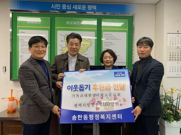 평택시 장안동 소재 기독교대한감리회고궁교회는 22일 설 명절을 맞아 송탄동 내 저소득 가구에게 평택사랑상품권 100만원을 지원해 따뜻한 이웃사랑을 실천했다.