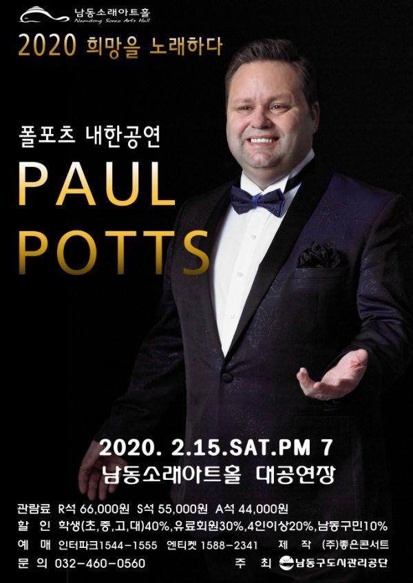 영국의 쇼 프로그램 ‘브리튼즈 갓 탤랜트’에서 우승하며 세계적인 성악가가 된 ‘폴포츠 내한공연’이 오는 2월 15일 오후 7시, 인천 남동소래아트홀 대공연장에서 개최된다.