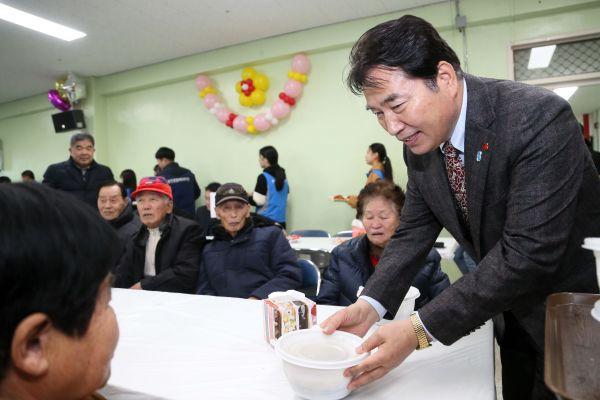 백군기 용인시장, 떡국 나눔 행사서 어르신 건강 기원