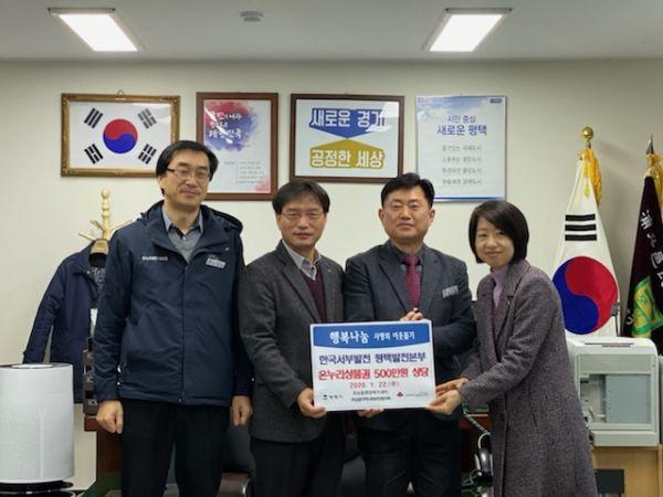 한국서부발전 평택발전본부는 22일 설명절을 맞아 평택시 포승읍 행정복지센터를 방문해 온누리 상품권을 기탁했다.