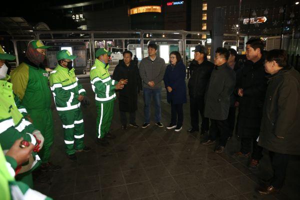 수원시의회 도시환경교육위원회는 23일 새해부터 주간근무를 도입해 실시하고 있는 수원시 청소근로자들을 격려 방문했다.