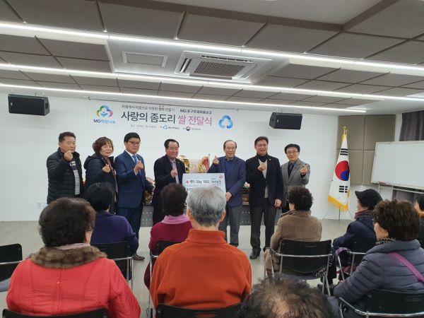 동구로새마을금고가 22일 구로4동주민센터에 백미 100포를 기탁했다.